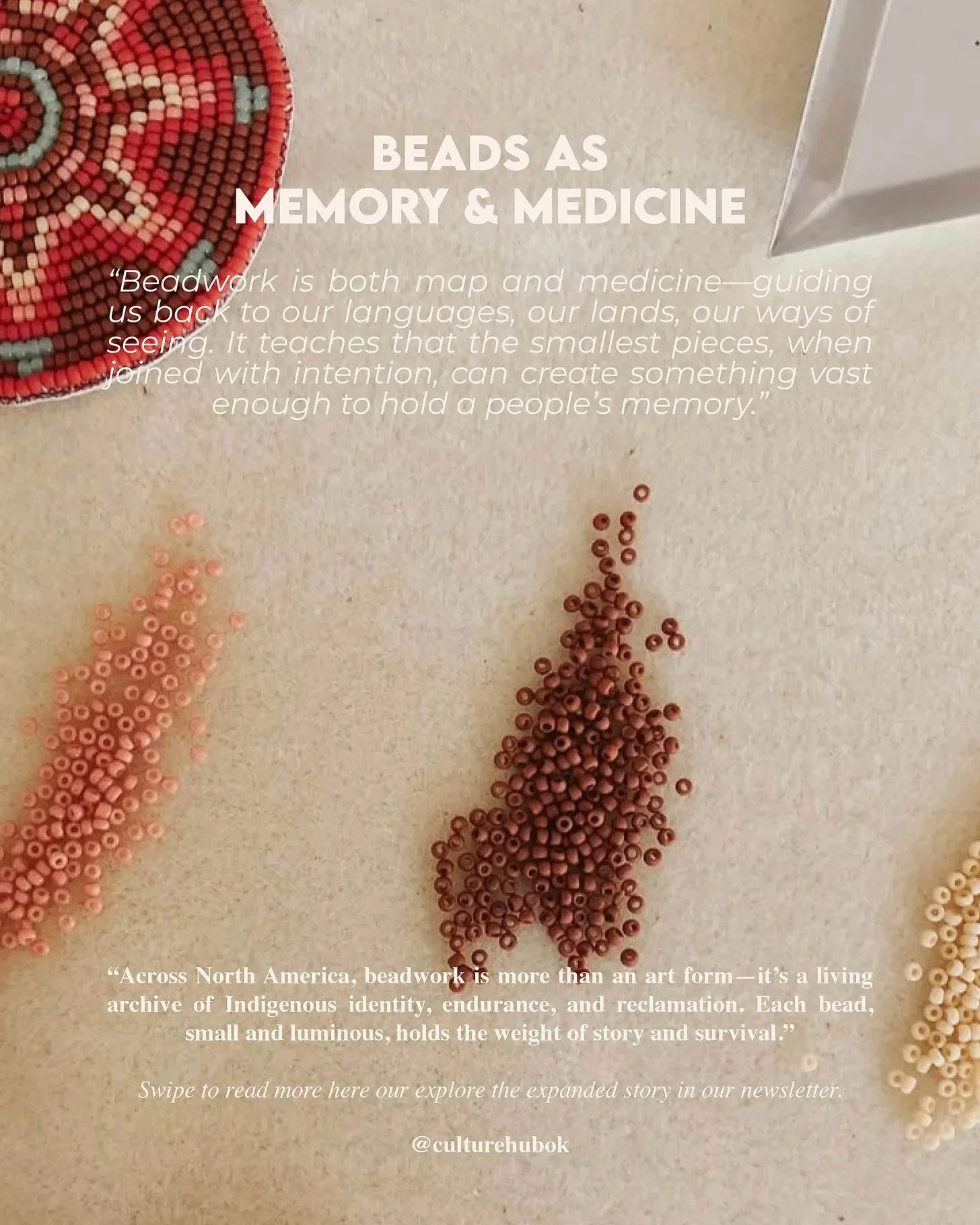 Beadwork is both map and medicine—guiding us back to our languages, our lands, our ways of seeing. It teaches that the smallest pieces, when joined with intention, can create something vast enough to hold a people’s memory.